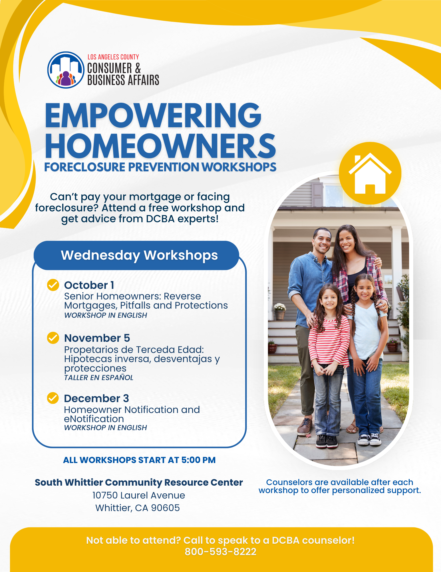 Foreclosure Prevention - Foreclosure Prevention workshops hosted at the South Whittier Community Resource Center. Foreclosure Prevention Workshop Oct-Dec 2025 SPANISH Foreclosure Prevention Workshop Oct-Dec 2025 Foreclosure Prevention flyer bilingual 10.27.22